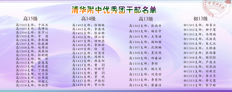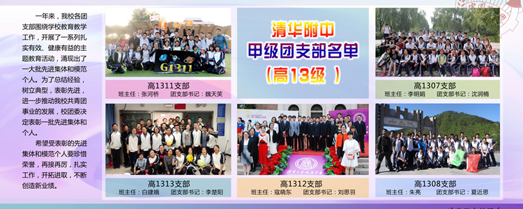 在本次“五四”评优中共有25个班级荣获甲级团支部称号,分别是初1312支部、初1307支部、初1309支部、初1302支部、初1308支部、初1310支部;高1311支部、高1307支部、高1308支部、高1312支部、高1313支部;高1406支部、高1418支部、高1410支部、高1408支部、高1412支部、高1405支部、高1402支部;高1513支部、高1503支部、高1515支部、高1514支部、高1516支部、高1510支部、高1512支部。共有10名同学被评为“十佳团员”,他们是高1505支部冷延鹏、高1515支部朱翊豪、高1513支部杜佳霖、高1403支部胡泰阁、高1414支部刘时宇、高1406支部於琨朋、高1305支部徐沁玫、高1307支部齐伟峻、高1309支部刘欣童、初1308支部郭玥彤。还有59名同学被评为“优秀团干部”、169名同学被评为“优秀团员”。