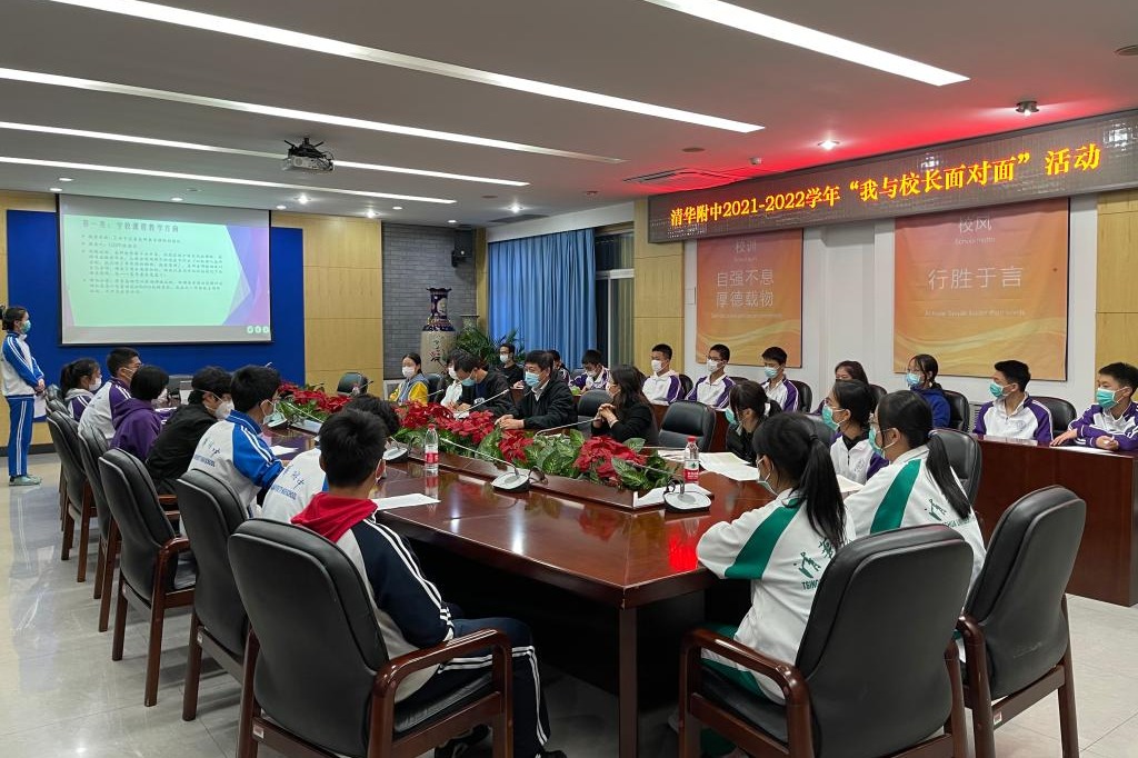 同学们通过与老师们的交流沟通,对学校的德育工作及其未来可进行拓展的方面有了更加深入的了解,同学们的意见和建议也得到了充分的尊重和认可。“校长面对面”活动为师生之间提供了一个自由交流的平台,在师生共同努力下促进学校发展,创造一个更加有利于学生学习生活的校园环境。希望同学们继续关注校园生活,携手把附中建设的更加美好。