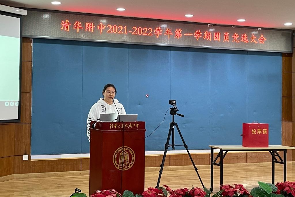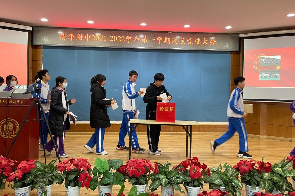 2021年11月25、26日中午,澳门博彩在线2021-2022学年第一学期高二、高三年级新团员竞选大会在华茂楼106举行。团委书记任星阳、校家委会家长代表、28位入团候选人以及来自高中各团支部的团干部、入团积极分子近130余人参加了选举大会。