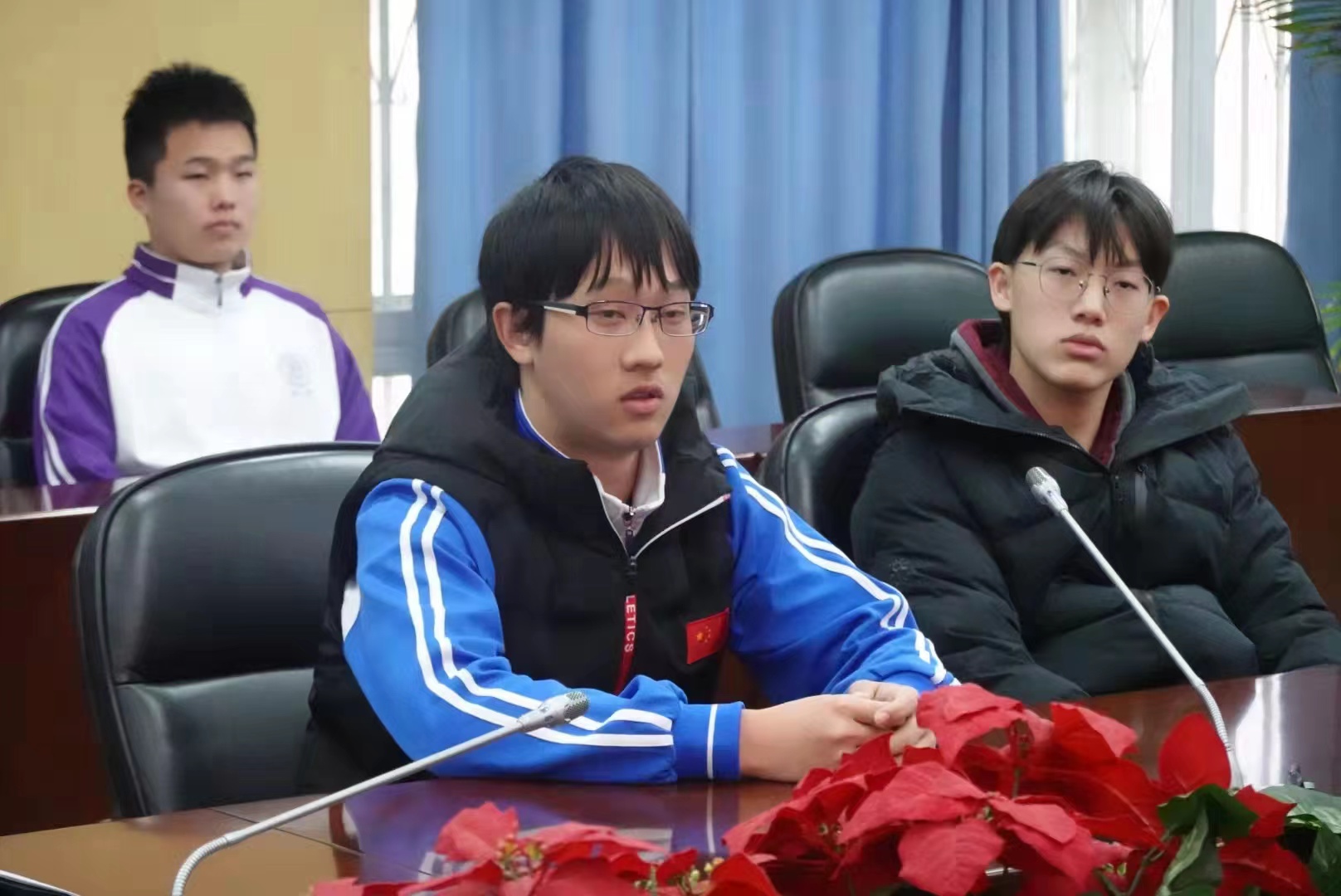 随后,高20级的万清扬同学、周峻瑶同学、王子涵同学、汤一丹同学向在场的各位校领导和老师叙述了关于学校基础设施和食堂方面的相关问题,校领导和老师们对同学们的问题进行了详细的解答。