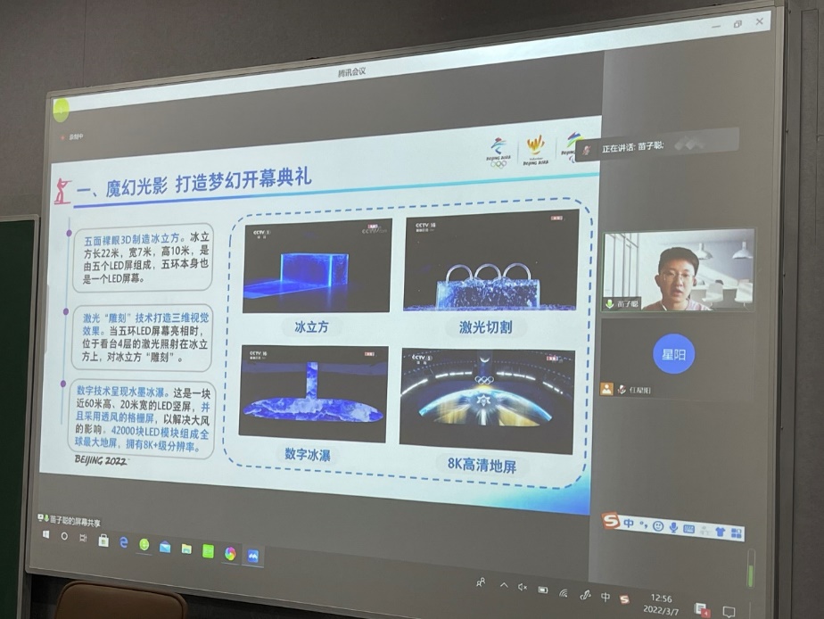 此外,苗子聪学长还讲述了智慧场馆的绿色与智能化,8k沉浸体验等。每一个细节无不展现了中国综合实力的提高,国际影响力越来越强。同学们认真记录相关笔记,对冬奥会开幕式有了更深层次的理解。同时,也深受触动和启发,表示应珍惜当下,不断提升自我,将来为祖国贡献一份力量。