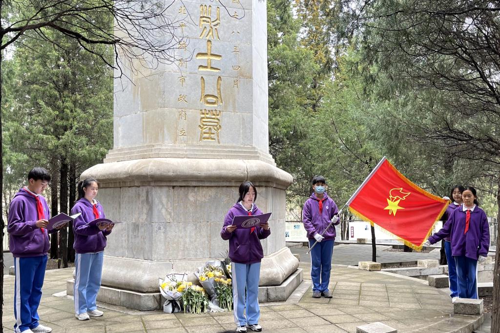 3月30日中午,学生发展中心主任王田老师、团委书记任星阳老师、少先队大队辅导员周芯卉老师带领40位少先队员在圆明园三·一八烈士公墓进行了清明祭扫主日队日活动。