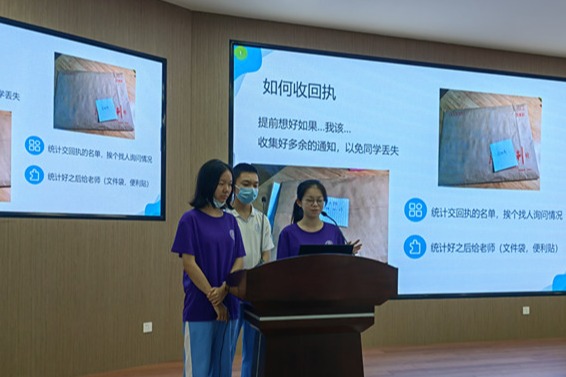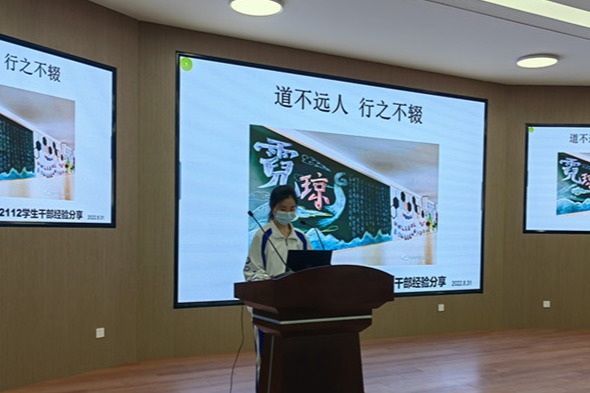 高2111班肖惠文进行班级经验分享,他们在班级凝聚力建设、学习共同体意识等方面都给全体同学做出表率作用,班内学科竞赛、公众号的灵活使用等巧思更是层出不穷。期待高2111班的分享能给其他各班的班级发展提供新的榜样作用。接着,学生干部向大家介绍了新学期活动安排、团委学生会招新计划、“微公益 梦起航”活动和班级空间文化布置等活动的安排。