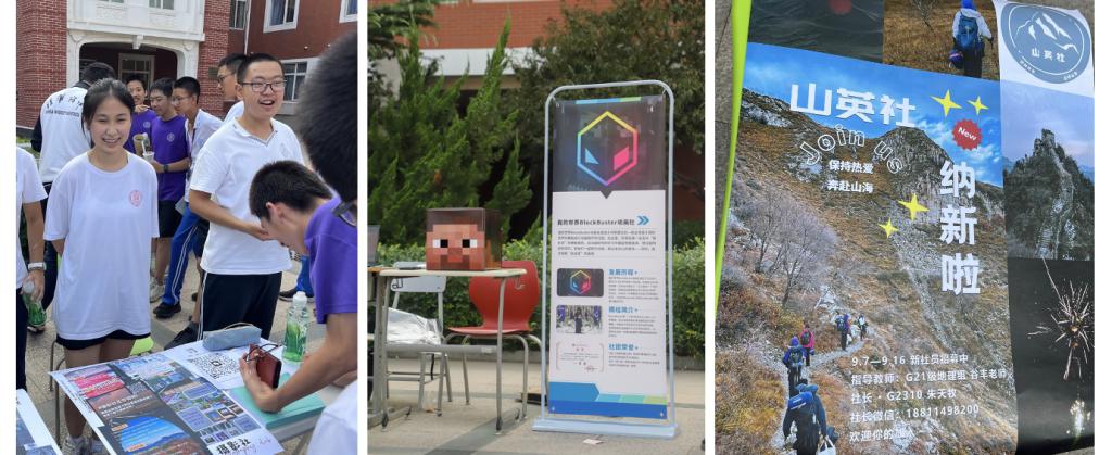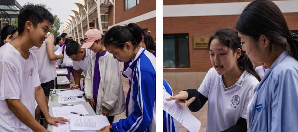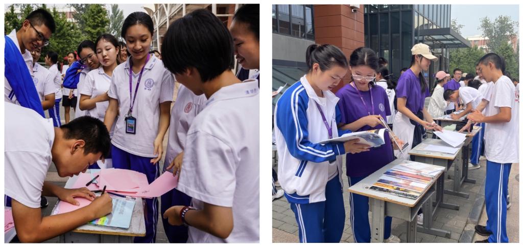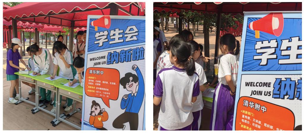 9月5日、6日中午,团委高中学生会的各部门负责人一下课就摆放好了桌椅,为招新活动做好准备。随着同学们陆续经过食堂,招新现场逐渐热闹起来。