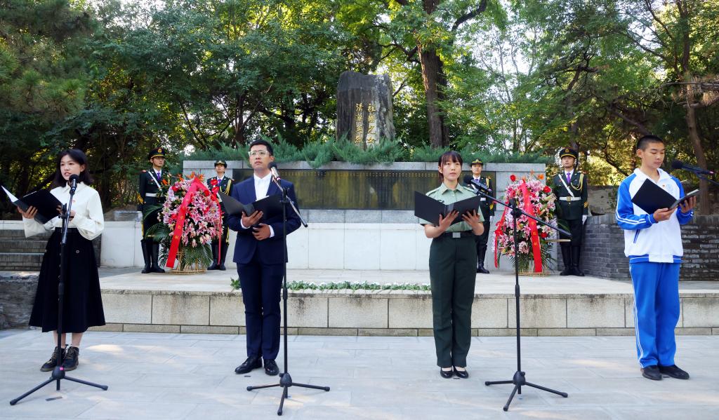 清华大学党委书记邱勇代表全校师生向为了新中国的诞生和人民的幸福而抛头颅、洒热血的英烈们,致以沉痛的哀悼、深切的缅怀和崇高的敬意。邱勇表示,在清华光荣革命传统和优良文化传统的熏陶下,一代代清华人在我国革命、建设、改革和新时代的伟大实践中,用自己的实际行动自觉传承着清华精神、践行着报国志向。他号召清华师生传扬英雄精神、凝聚奋发力量,不断在强国建设、民族复兴的新征程上创造新业绩、书写新辉煌,以一个更好的中国来告慰革命先烈的不朽英灵。
