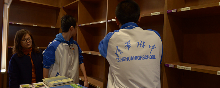 高中同学在图书馆整理书籍