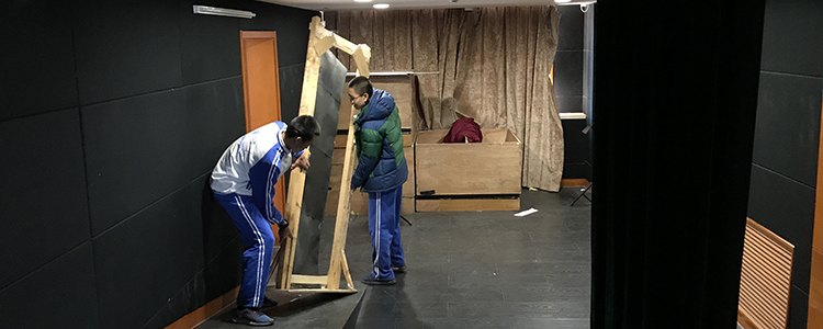 高中同学在整理食堂三层报告厅杂物