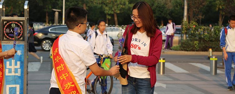 学生为老师献上鲜花
