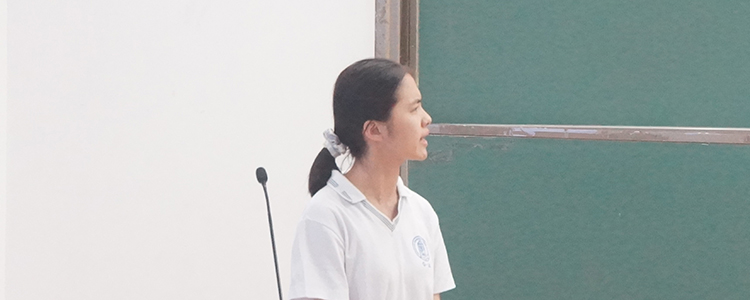 初1905班代表魏语函和王玮笛两位同学为大家作了“水木行动:让附中的美丽与我有关”的主题分享,分别从我们的行动、任务安排、遇到的问题以及感悟入手,生动地展现了初1905班的自律与互助,并号召在场的同学们加入到水木行动的队伍中来,一起体会为校园服务的乐趣。