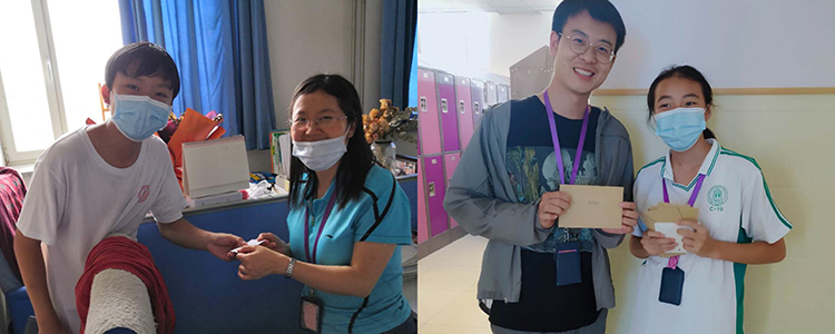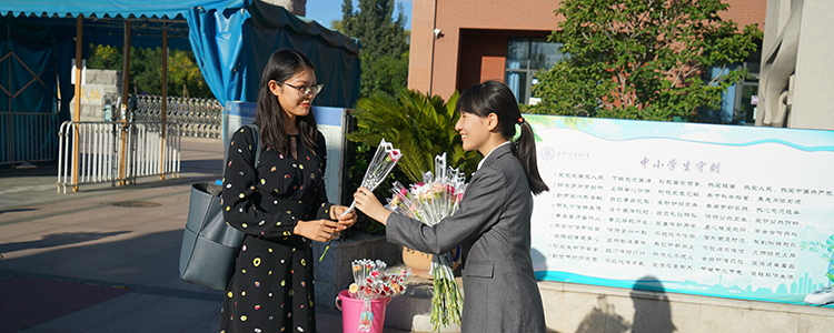 除献花活动外,团委学生会还举办了专门替广大学生传递教师节祝福的“教师节送贺卡”活动和“签名献真情”活动。初高中学生会的同学们在操场及食堂前设置摊点,发放事先准备好的爱心贺卡,由同学们亲自写下对老师的温暖祝福后,再由志愿者和外联部的同学们派送到老师手中。同学们用自己最真诚的语言在签名板上写下对老师的深深祝福,表达着内心的无限感恩与尊敬,路过的老师们看到后都感到温暖与幸福。