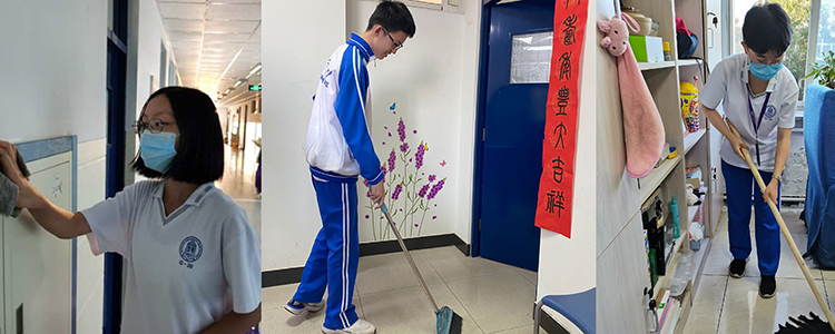 学生志愿者为老师打扫办公室