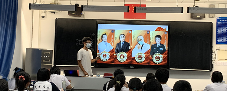 接下来,团干部们带领同学们学习了习近平总书记在全国抗击新冠肺炎疫情表彰大会上的重要讲话,总书记从6个方面系统总结概括为了“生命至上、举国同心、舍生忘死、尊重科学、命运与共”的伟大抗疫精神,团干部们结合具体实例对抗疫精神进行逐条解读。在第二个板块“致敬抗疫英雄,勇担时代重任”中,同学们学习了国家勋章和国家荣誉称号获得者钟南山院士、“人民英雄”张定宇、指导中医药全程介入新冠肺炎救治、主持研究制定中西医结合疗法的张伯礼和为疫情防控作出重大贡献的陈薇院士的感人事迹。