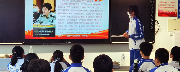在抗击疫情的战役中,清华力量格外耀眼。其中,清华大学化工系1991届研究生校友陈薇院士被授予“人民英雄”国家荣誉称号。清华长庚医院呼吸与危重症医学科副主任医师、内科部第二党支部书记、清华长庚支援武汉医疗队队长郭军被授予“全国抗击新冠肺炎疫情先进个人”荣誉称号,在学习这些抗疫英雄事迹的过程中,同学们感悟清华精神,体会新时代青年的责任与担当。