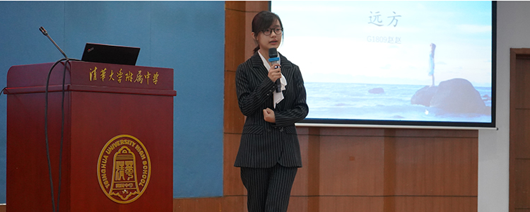 秉着公平公正的原则,本次决赛采用评委打分赛制。三位评委分别是胡洋老师、高国丽老师和上届比赛冠军选手高1713班刘思嘉同学。比赛分为两轮,第一轮是命题演讲“远方”的比拼,第二轮是即兴演讲。