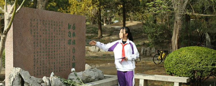 在献花仪式的同时,六位学生代表早早地来到六处纪念碑和雕像旁,为前来缅怀献花的师生讲述革命烈士和爱国先辈的光辉事迹。无数英烈们用自己的一生,谱写了属于自己的时代印迹,作为附中学子,更应该思考自己的人生使命,要为自己、为清华、为祖国、为世界留下独有的印迹,做合格的清华人、附中人。