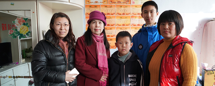杨丽菲老师(左二)和初1607班学生与资助家庭合影