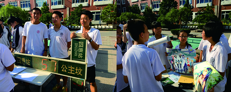 在招新现场,各学生社团的负责人从教学楼中搬出桌子椅子,又拿出海报和各自的“宣传装备”,认真布置招新摊位,并且耐心、仔细地向前来咨询的同学们讲解社团基本情况、活动内容及报名相关要求。现场围观咨询的同学们,有的直奔心目中早已向往的社团,激动地签下自己的名字;有的逐个摊位仔细探问,争取加入最心仪的社团;还有的三五成群,互相交流着自己对学生社团的想法。与此同时,各学生社团负责人们纷纷施展才华,以各式各样独特的宣传活动吸引新同学加入,招新现场热闹非凡。