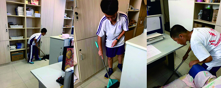 初中同学在为老师打扫办公室