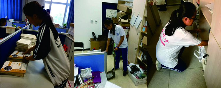 高中同学在为老师打扫办公室