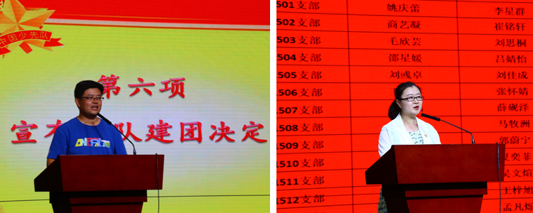 表彰大会后,初15级年级组长张彪老师宣布初15级离队决定,根据《少先队队章》年满14岁的队员,光荣离队,初15级共有424名同学离队。校团委书记任星阳老师随后宣布了初15级建团决定,特批准初15级品学兼优、各项素质出类拔萃、在学校班级各项活动中表现突出、能真正起到很好的模范带头作用的120名同学加入中国共青团,并在初15级建立1个团总支和14个团支部。在熟悉的少先队队歌中,少先队员们摘下佩戴6年的红领巾,并仔细珍藏。初1509班学生吕思橦代表离队少先队员发言,号召同学们怀抱着勇气与纯真,肩负着青年人的责任与担当,向着理想勇敢前行!