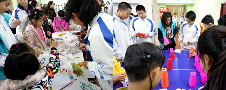 活动开始,先由主持人开场,与康复中心的同学们一起诗朗诵《面朝大海,春暖花开》,之后,澳门网上博彩的同学们表演了《四海皆一家》。经过短暂的熟悉后,附中学生分成了绘画、飞叠杯、乌诺牌、魔方和折纸五个小组,各自带领一些康复中心的同学们进行活动。在活动当中,同学们与康复中心的同学们积极互动,使康复中心的同学们融入到了活动当中,同学们之间有了更深入的交流。