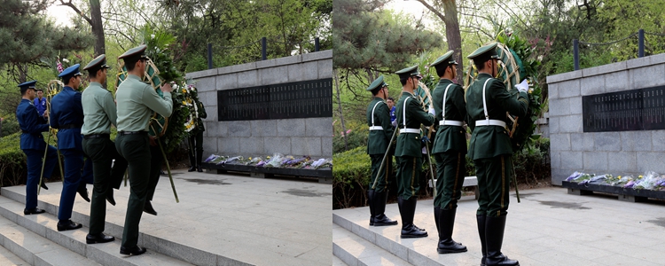 仪仗队敬献花圈