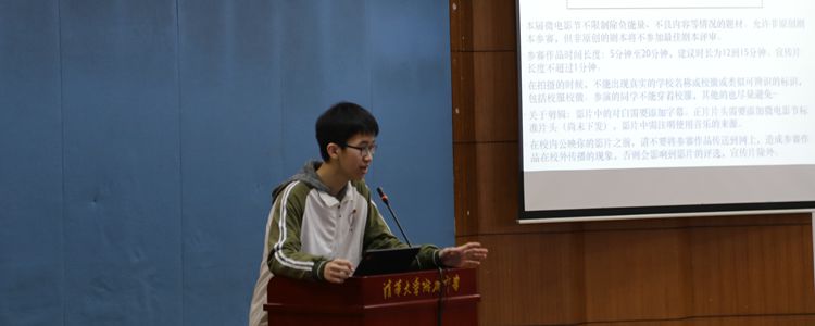 校团委秘书长郭文轩介绍澳门博彩在线第八届微电影节的通知