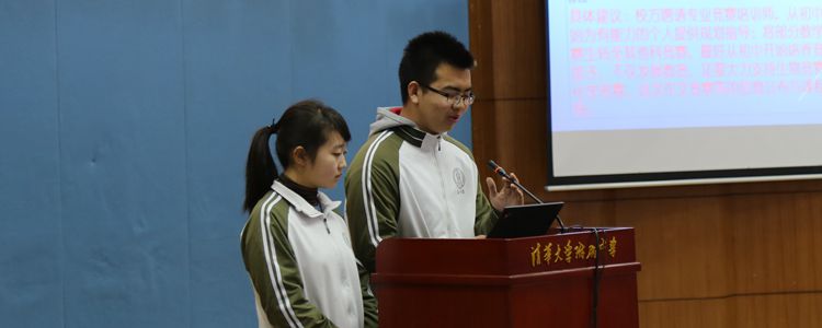 本次学生干部工作培训会共由六个环节组成,主要针对上学期各项学生工作进行了系统完整的回顾,并对新学期的工作安排做出明确指导。会议第一环节为上一学期工作回顾,初、高中团委学生会干部分别就各自上学期所开展的精彩活动进行了总结回顾;第二环节为优秀团支部工作经验介绍,初1416班、初1509班、初1511班、高1611班和高1503班团支部分别围绕各自团支部建设特色与全体在场同学分享了工作管理、活动开展等方面的经验;第三环节为新学期工作计划安排,学生发展中心指导教师孙振杰和岑逸飞分别在高中和初中会场为同学们详细讲解了本学期的星级班级申请、学生行为规范规章制度及值周工作的专题介绍。