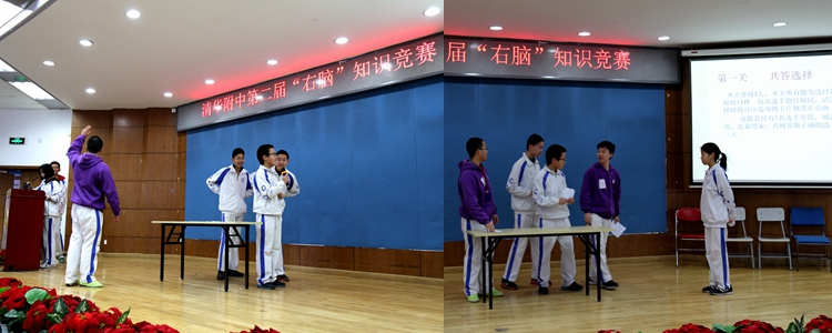 2月24日的海选分为初一、初二两个赛场,分别在 B202、B206教室比赛。海选采用选手轮答的方式,选手们需要在十五秒内用其强大的“右脑”思考作答,最后两个分会场各有十名选手挺进复赛!