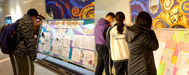 在与校团委宣传部的合作下,校团委组织部共制作了三块展板。所有一等奖班级的代表篇目、优秀创新篇目及优秀个人篇目都在展板上进行了展示,吸引了不少师生驻足观看学习。本次优秀团日志展览将会持续两个月。