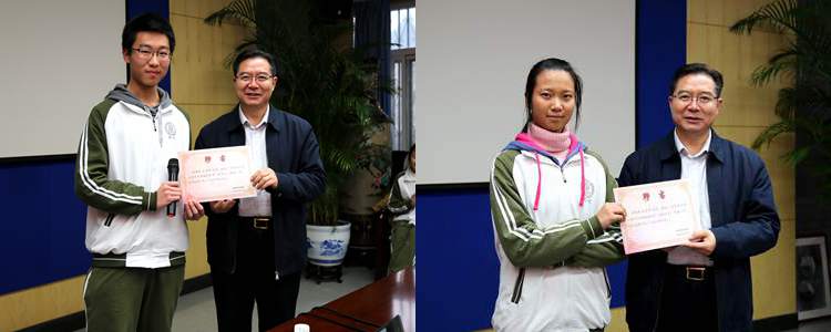 王殿军校长为第八期领袖训练营秘书长(左)、副秘书长(右)颁发聘书