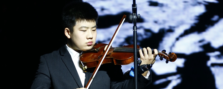 高1614班田亦农在开场表演小提琴独奏《辛特勒的名单》