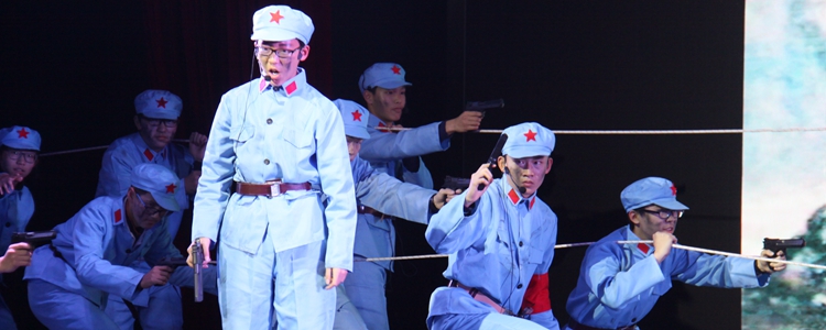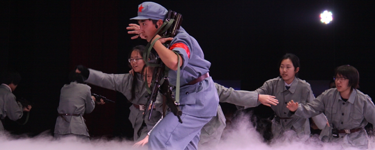 纪念“一二·九”运动革命短剧展演是澳门网上博彩一项传统的爱国主义教育活动,每年在高一年级举办。旨在让学生通过自编自演革命短剧,感受革命精神和心怀天下的责任感,激发爱国热情。今年是中国共产党成立95周年,也是中国工农红军长征胜利80周年,希望同学们通过编排剧目做到铭记历史,警钟长鸣,把自己的成长和祖国的命运联系在一起。