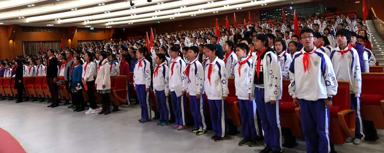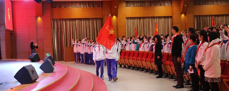 2016年11月14日下午,澳门博彩在线初16级建队仪式在学校报告厅举行。此次活动以“传递红色旗帜,争当少年先锋”为主题,学生发展中心副主任王田、初16级年级组长赵岩、校团委书记任星阳、少先队辅导员傅舒舒及初16级各班班主任出席活动,初16级全体学生约550人参加。