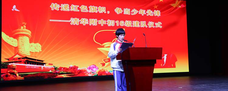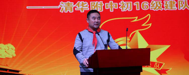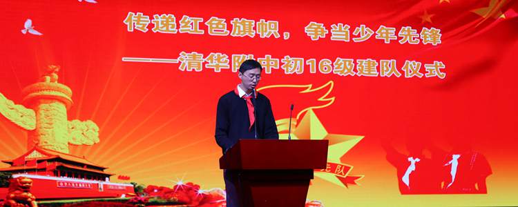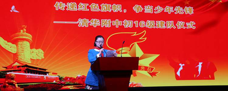 最后,初一年级组长赵岩老师对建队仪式做了总结性发言,强调了建队仪式中仪式感的意义,即对信仰、规则、责任的提醒。同时希望少先队员们能有自我担当,并担当起集体荣耀以及民族未来,并以自身代表的80后的成长为例,虽然每一代都被上一代担心过,但他们终将也必将超越他们的前辈,创造更美好的世界。