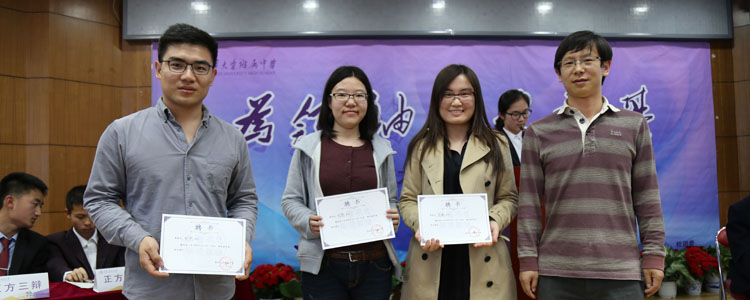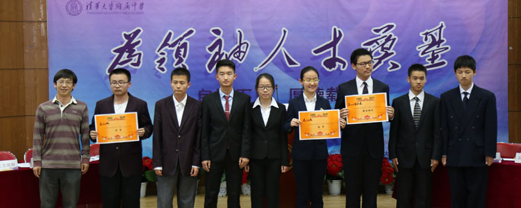 高一学部主任李劲松(左1)为获奖队伍和个人颁奖