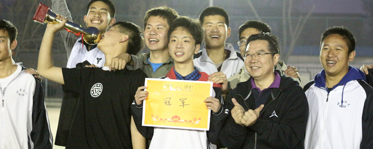 王殿军校长(前右1)为冠军球队颁奖