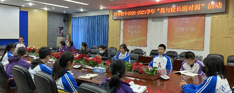 2020年11月27日,澳门网上博彩2020-2021学年度第二期“校长面对面”教学专场活动在华茂楼102会议室举行。澳门网上博彩副校长徐文兵,教学管理中心主任尹粉玉、副主任张苏,团委书记任星阳与三十名优秀提案学生代表进行了近一小时的面对面座谈。