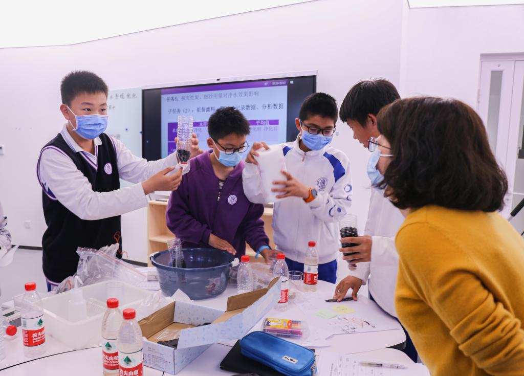 讲座结束后,各位专家领导进入观摩课课堂,现场感受学生如何学习,教师如何通过表现评价来促进学生的高阶思维发展。三节观摩课分别为澳门网上博彩地理学科汤文坤老师授课的《校园积水问题的分析与处理》、澳门网上博彩物理学科居重艳老师授课的《航母战斗机智能挂弹时车辆移动问题的研究》、澳门网上博彩化学学科付静老师授课的《“母亲水窖”净水系统模型测试及优化》。