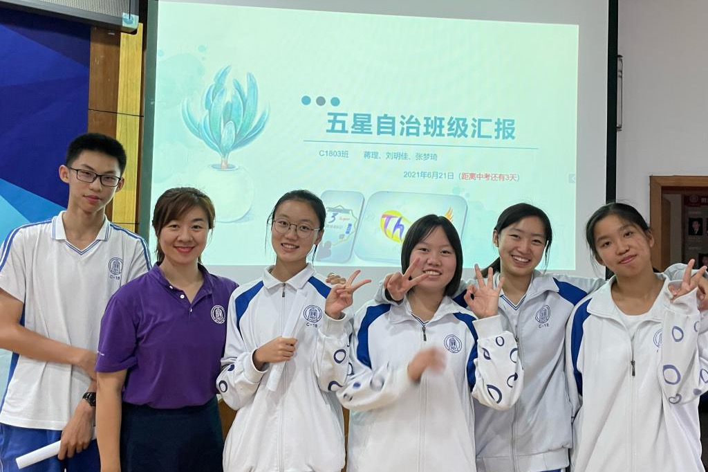 在班级管理中,渗透“君子自省五则”,强调自律的重要意义;重视学生品格的培养,帮助他们树立正确的价值观;擅于利用学校平台和校外资源,组织学生进行微公益的活动,将教育转化于无形之中;积极进行家校沟通,让家庭教育成为关键问题的催化剂。