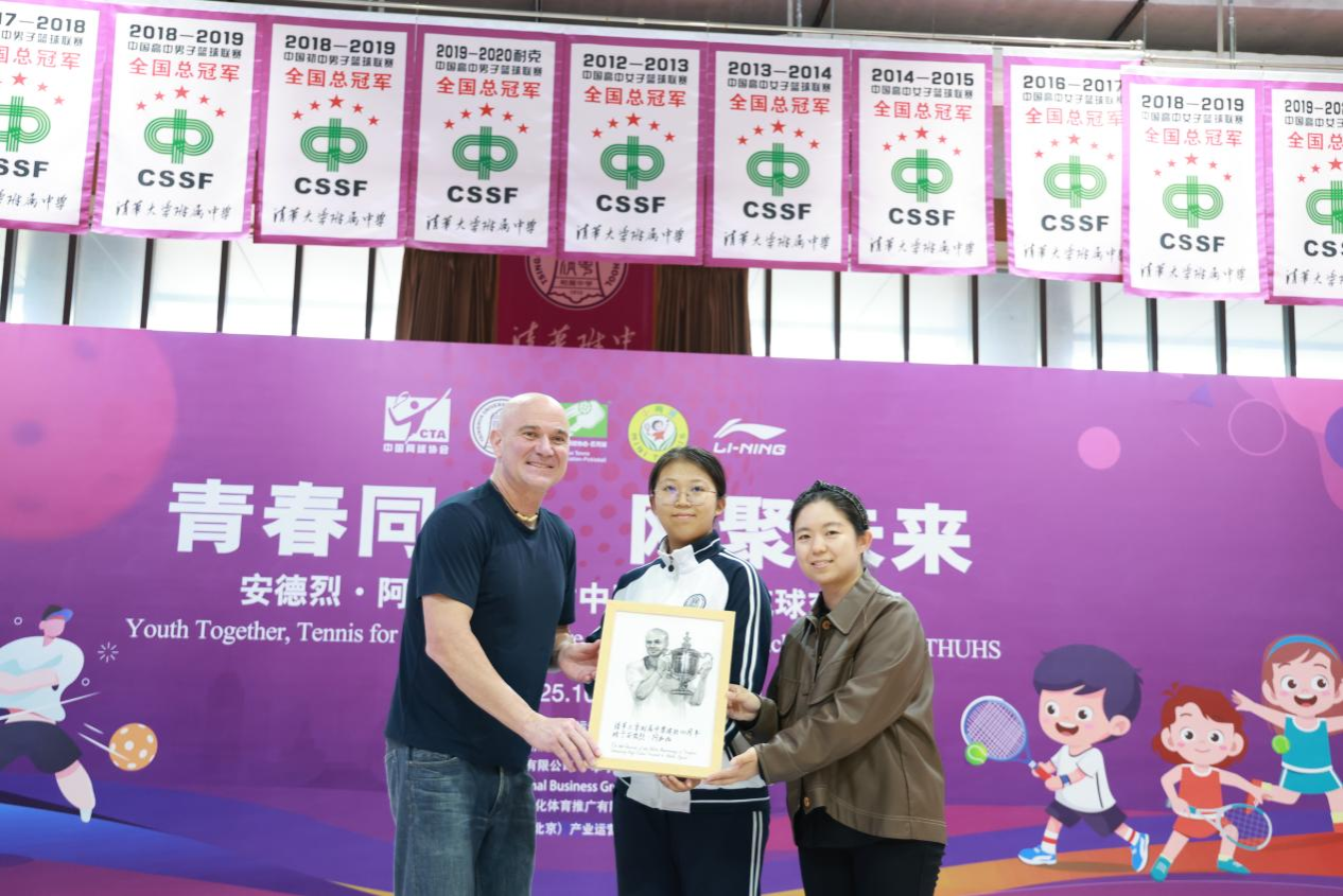 活动最后,阿加西与网球中心、澳门网上博彩及学生代表互赠礼物,为这场充满朝气与热情的校园行画上圆满句号。