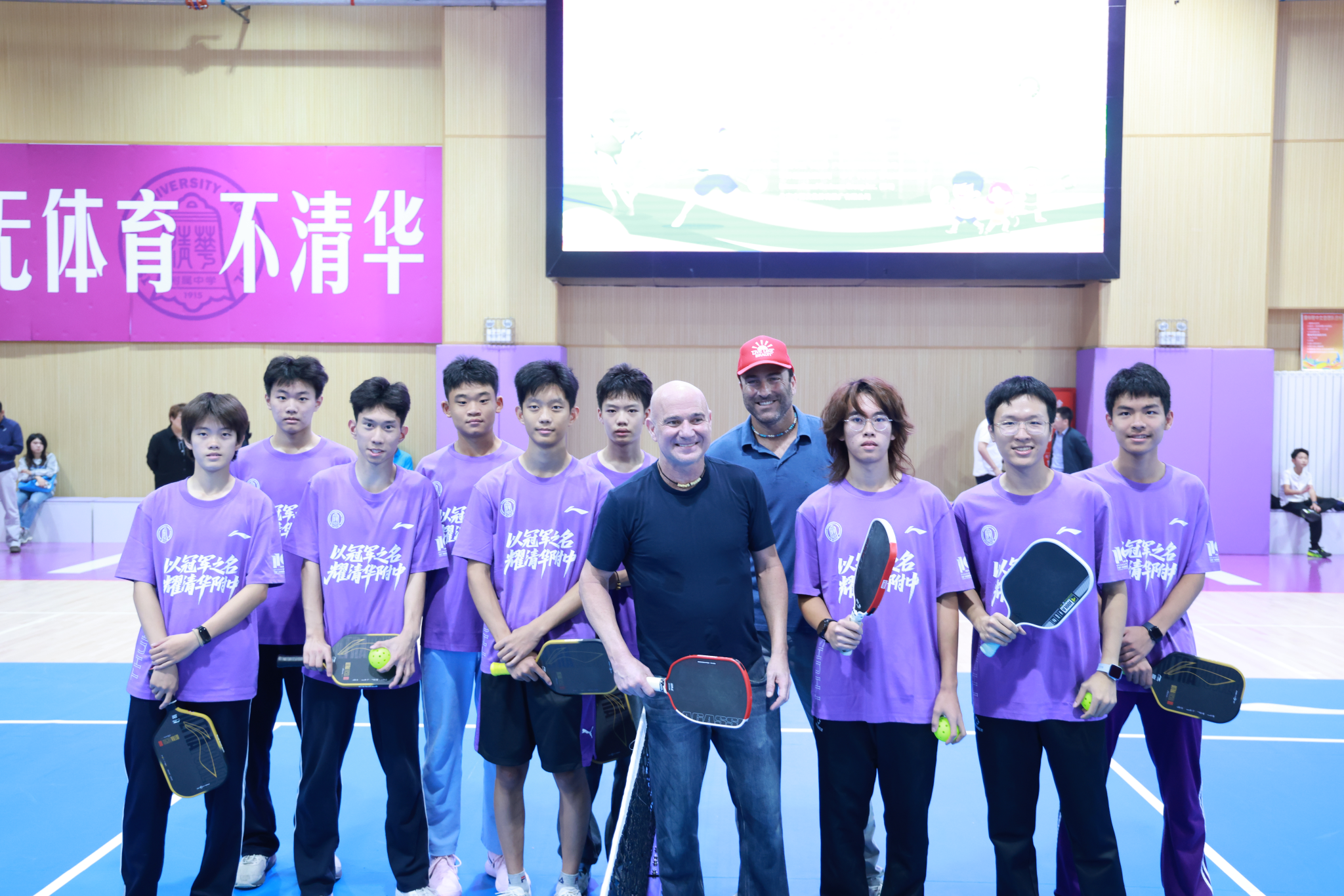 当活动从网球转向匹克球,现场氛围愈加热烈。阿加西持拍加入战局,与搭档默契配合,打出多个精彩回合。场边师生与嘉宾的掌声、欢呼声不绝于耳,新兴运动的活力与魅力感染了每一个人,生动诠释了匹克球作为中美青少年交流新纽带的角色。