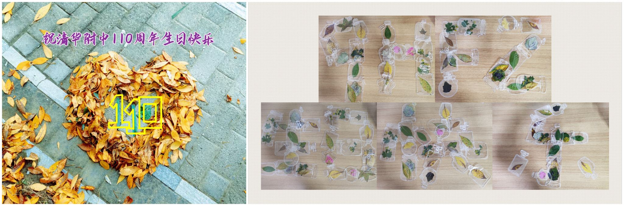 同学们用搜集的秋叶祝福学校