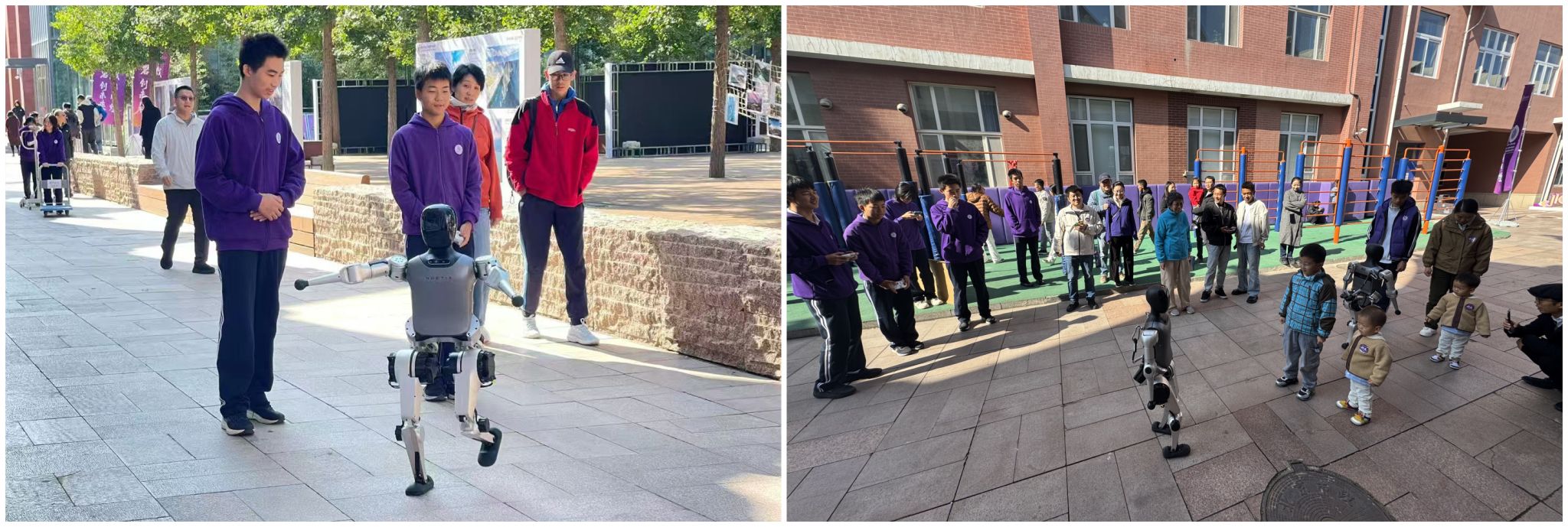 学生志愿者操作机器人与返校校友互动