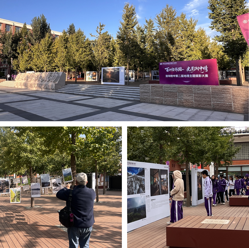 此次摄影大赛在银杏林设置了专题的展览。作为办学成果展示“校园开放路线”的重要一环,它成了校园里的“人气打卡地”:返校校友驻足展前追忆青春,家长携孩子聆听影像背后的地理故事。“在校生的研学足迹与校友珍藏的影像在这里相遇”,“百十经纬路,光影附中情”的主题从标语化作实景,这种走出去观察、用镜头记录的方式,让知识内化为能力,让审美生长为热爱,让“传承附中精神”满是鲜活的温度。