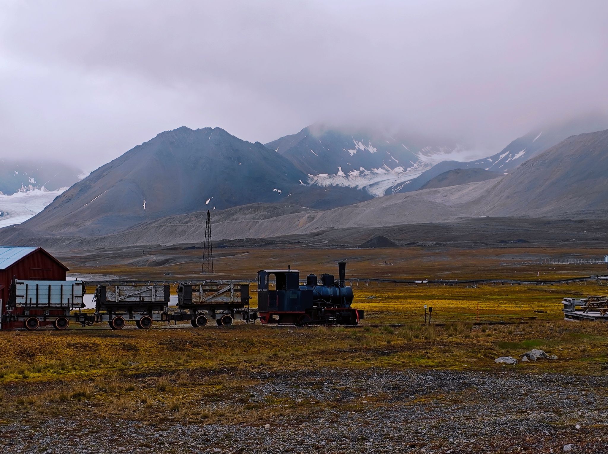 这条位于北纬78°55’的窄轨铁路建于20世纪初煤矿开采时期,是北极圈内罕见的工业运输遗存。铁路线连接着煤矿遗址与港口码头,暗红色车头与北极苔原苍茫的背景构成强烈视觉冲击,成为极地环境中的典型文化景观。这列小火车行进在人类文明的最北沿,工业在此褪去了征服者的傲慢,渐渐与这片圣洁的土地融为一体。它静静地立在码头,彰显着人类对保护环境的认识与践行,守护着宝贵的地质科研基地。