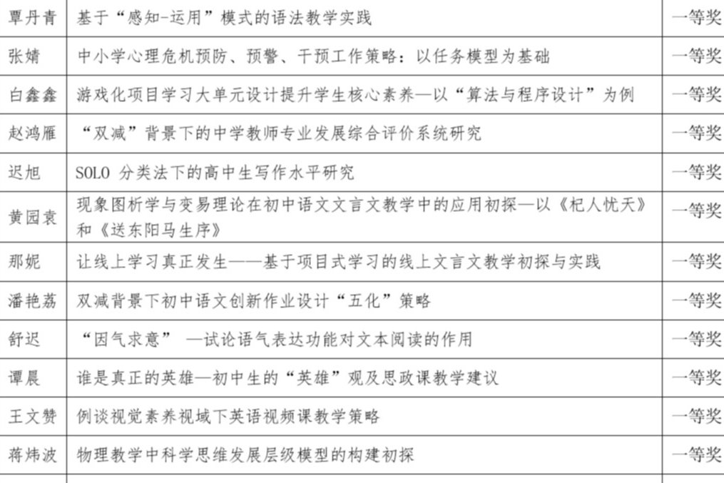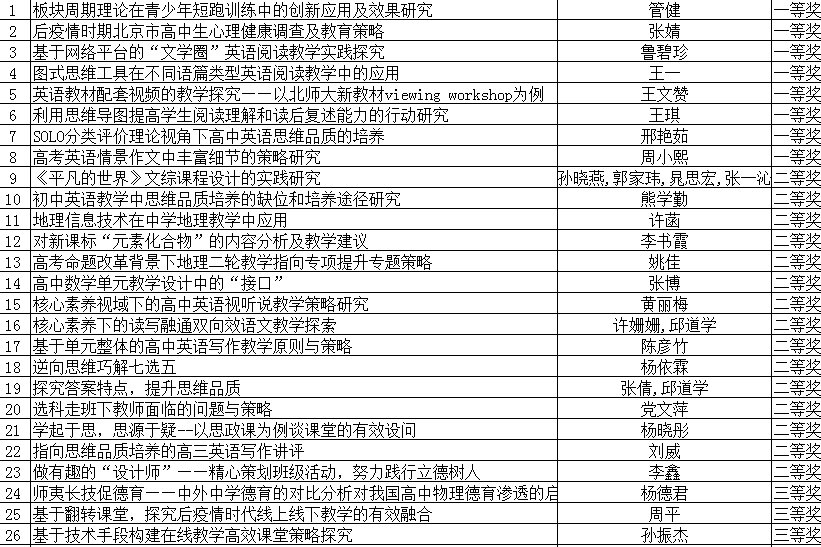 澳门博彩在线教师在海淀区第十七届教育科研优秀论文评选中获奖
